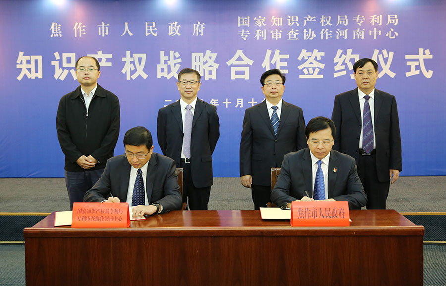 10月19日,焦作市人民政府与国家知识产权局专利局专利审查协作河南中心知识产权战略合作协议签约仪式在市会议中心举行。市委副书记、市长徐衣显,国家知识产权局专利局专利审查协作河南中心党委书记、主任刘志会在签约仪式上分别致辞。国家知识产权局专利局专利审查协作河南中心党委副书记、副主任石晓东,市委常委、常务副市长李民生,市委常委、副市长汪习武出席签约仪式。