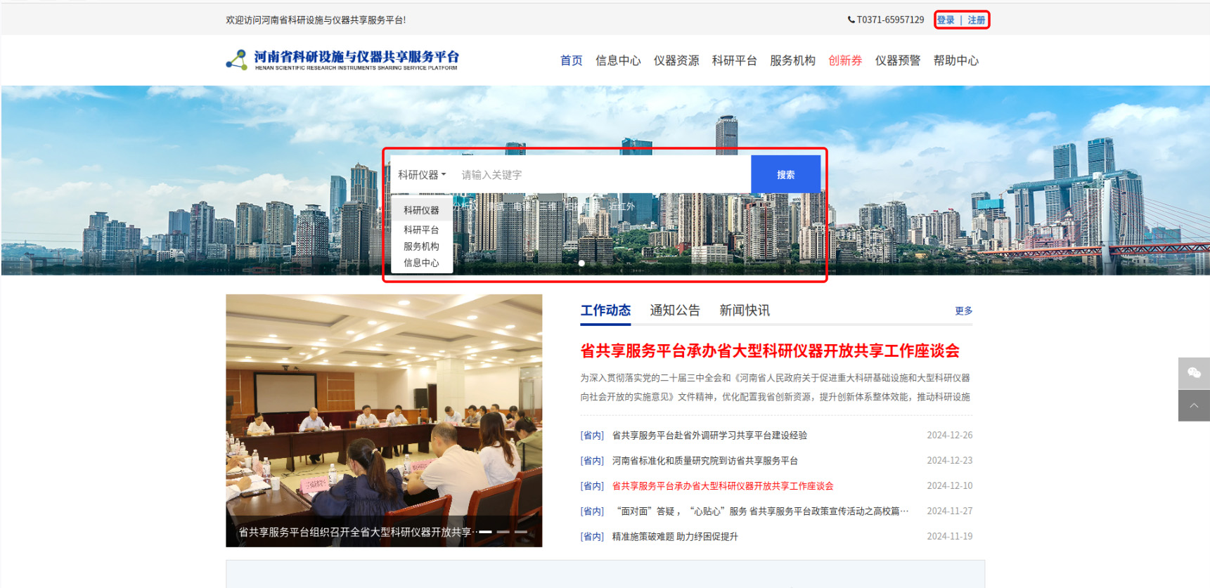 用户可下载附件查看焦作市本级科研设施与仪器共享的相关信息,并登陆“河南省科研设施与仪器共享服务平台”浏览或注册、登陆账号查看仪器详细信息。